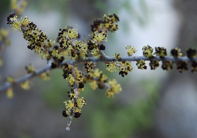 Description: This shrub has gray to black, smooth bark. Its leaves are oblong or lance-shaped with small hairs on both sides. The clusters of green and purple flowers are followed by brown, egg-shaped fruits 3/8 of an inch long.