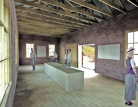 Now re-imagine it — as the architects do above and to the left — re-imagine it after it becomes a place which people CAN visit informally, a place where they can see displays of both Tumamoc's history and current research projects.